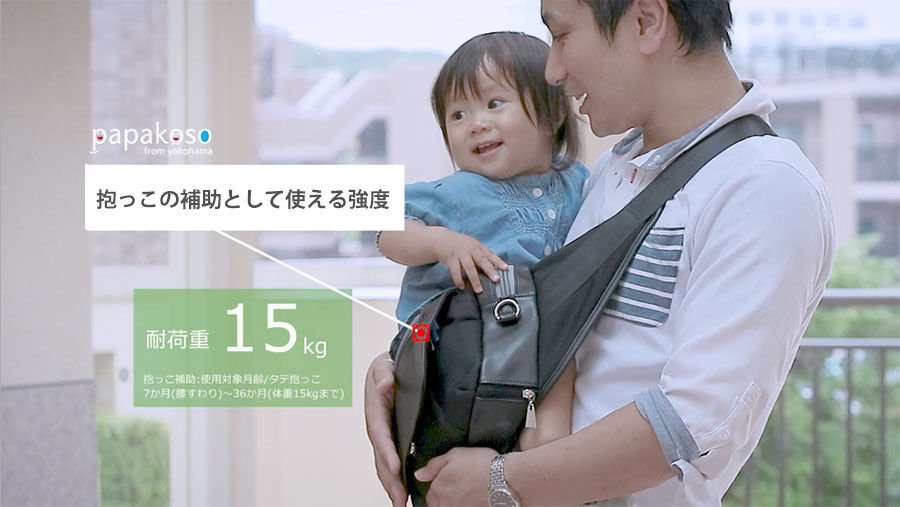 独自の縫製方法やパーツの使用により、負荷のかかる部位において700ニュートン以上の強度を実現。体重15kgまでの子どもを抱っこする際の補助としても使える強度です。